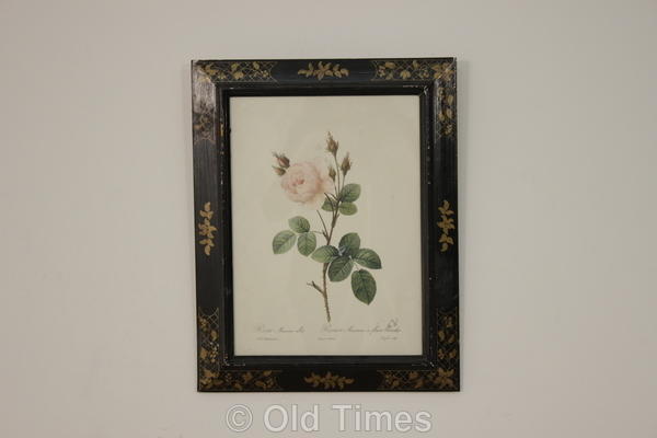 20" x 16" Black Frame Gold Decor Print Of Pink Roses